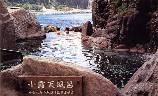 露天風呂は大・小・展望と3タイプあり男女混浴(水着着用=800円)だ。